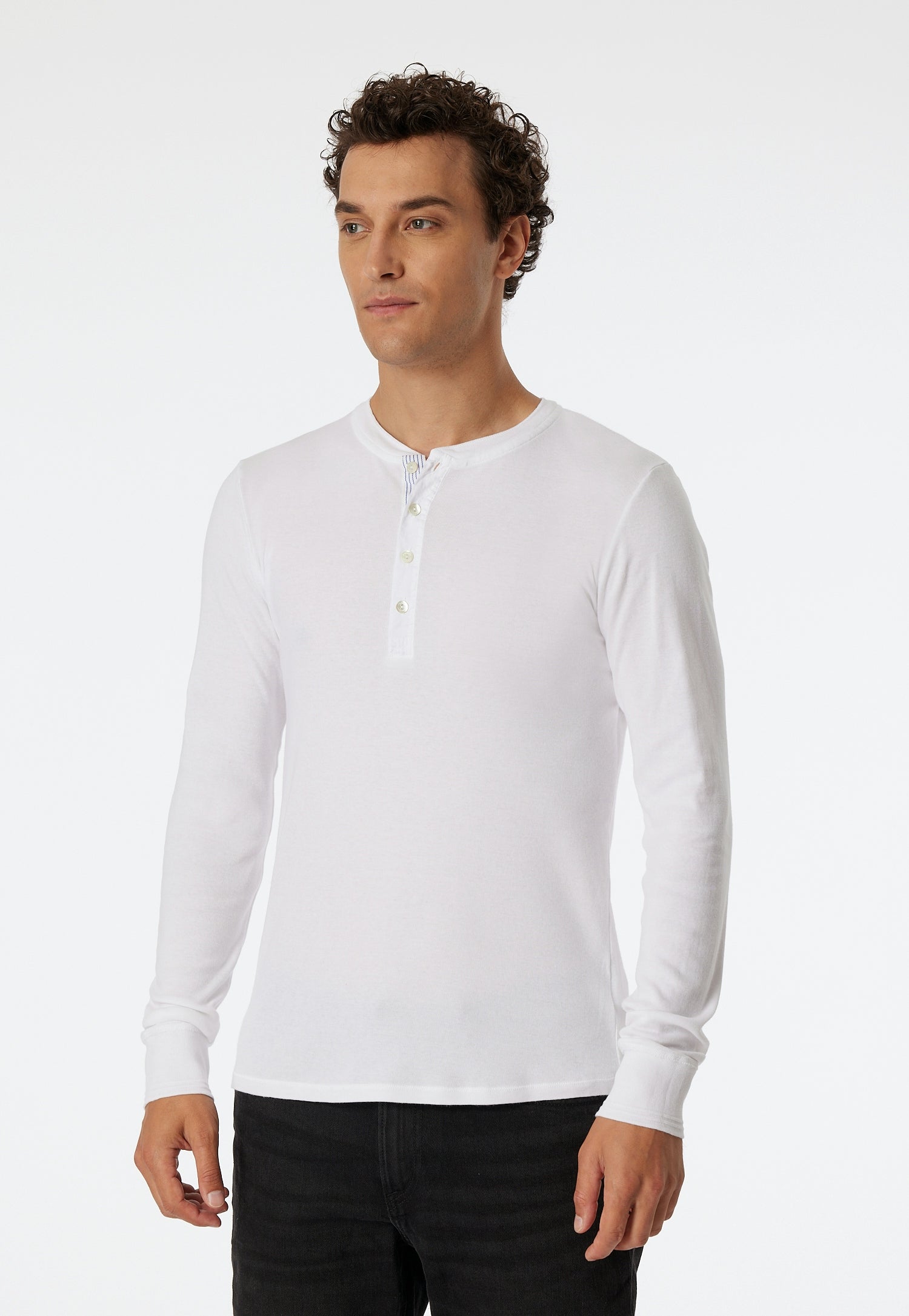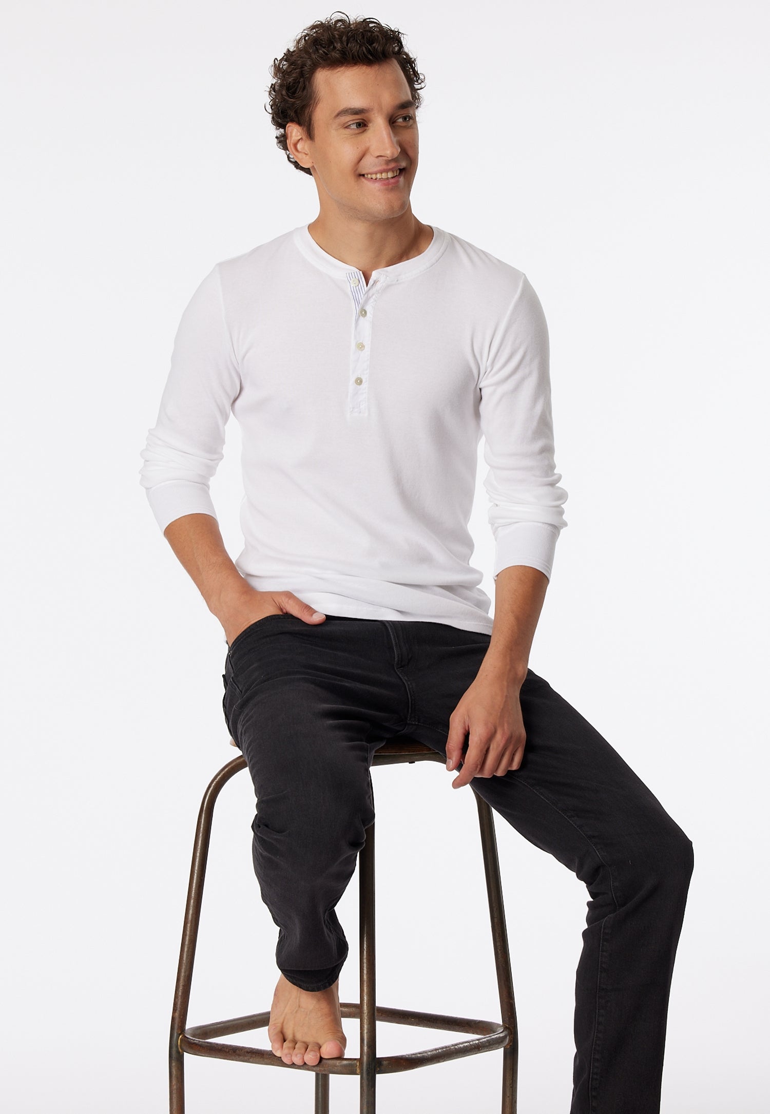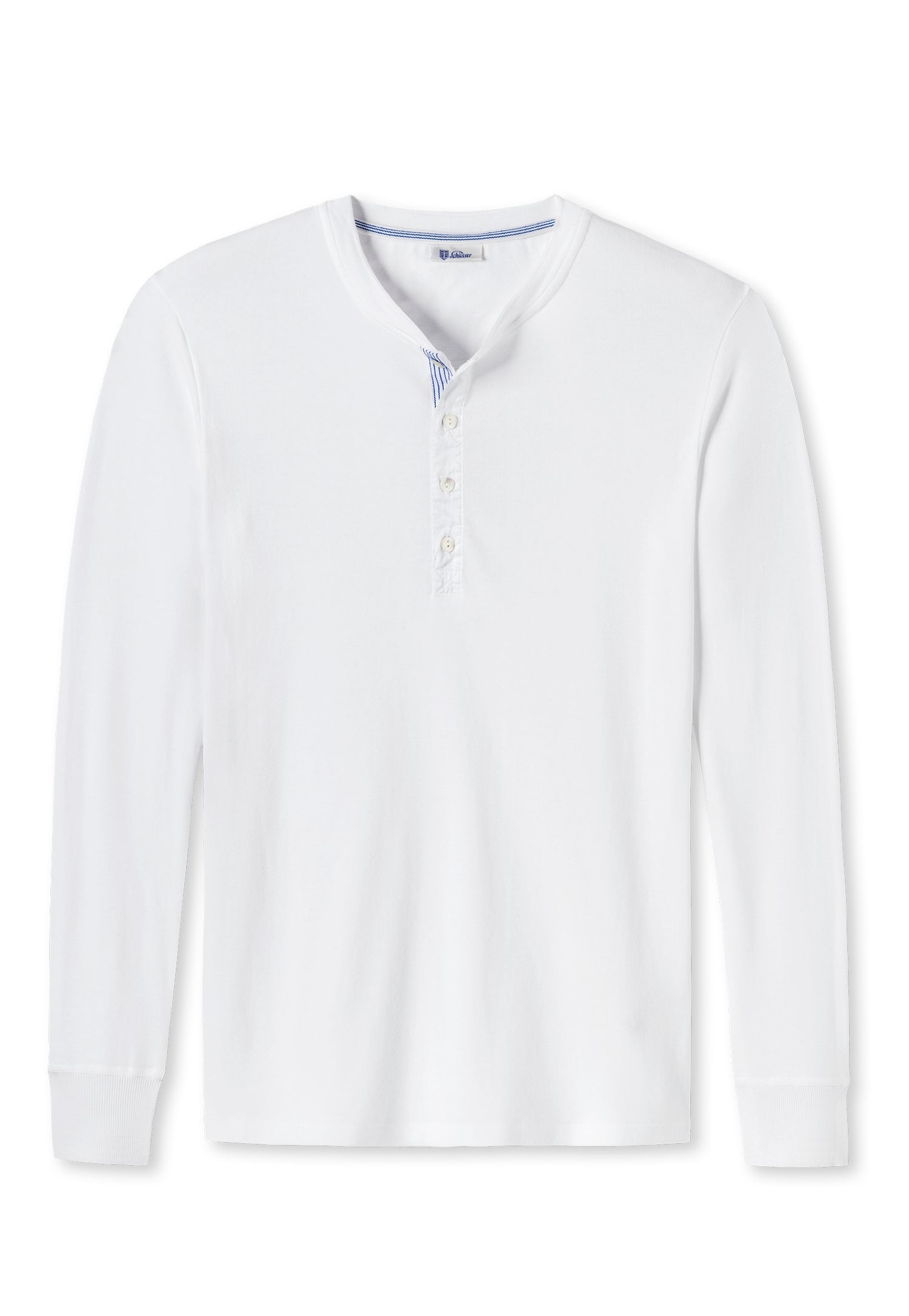 Ich bin's, Karl-Heinz. Du kennst mich bestimmt schon, ich bin der Kultklassiker von 1923, verkörpere beste Handwerkskunst und feinste Qualität im zeitgemäßen Look. Mit mir entscheidest du dich für ein Langarmshirt aus stückgefärbtem Feinripp, aus 100 % supergekämmter Bio-Baumwolle. Akzente setzen meine blauen Streifen, Perlmuttknöpfe und die traditionellen Flachränder als Armabschlüsse. Du siehst also: Ich bin nicht irgendwer, ich bin das Original unter den Originalen. Farbe