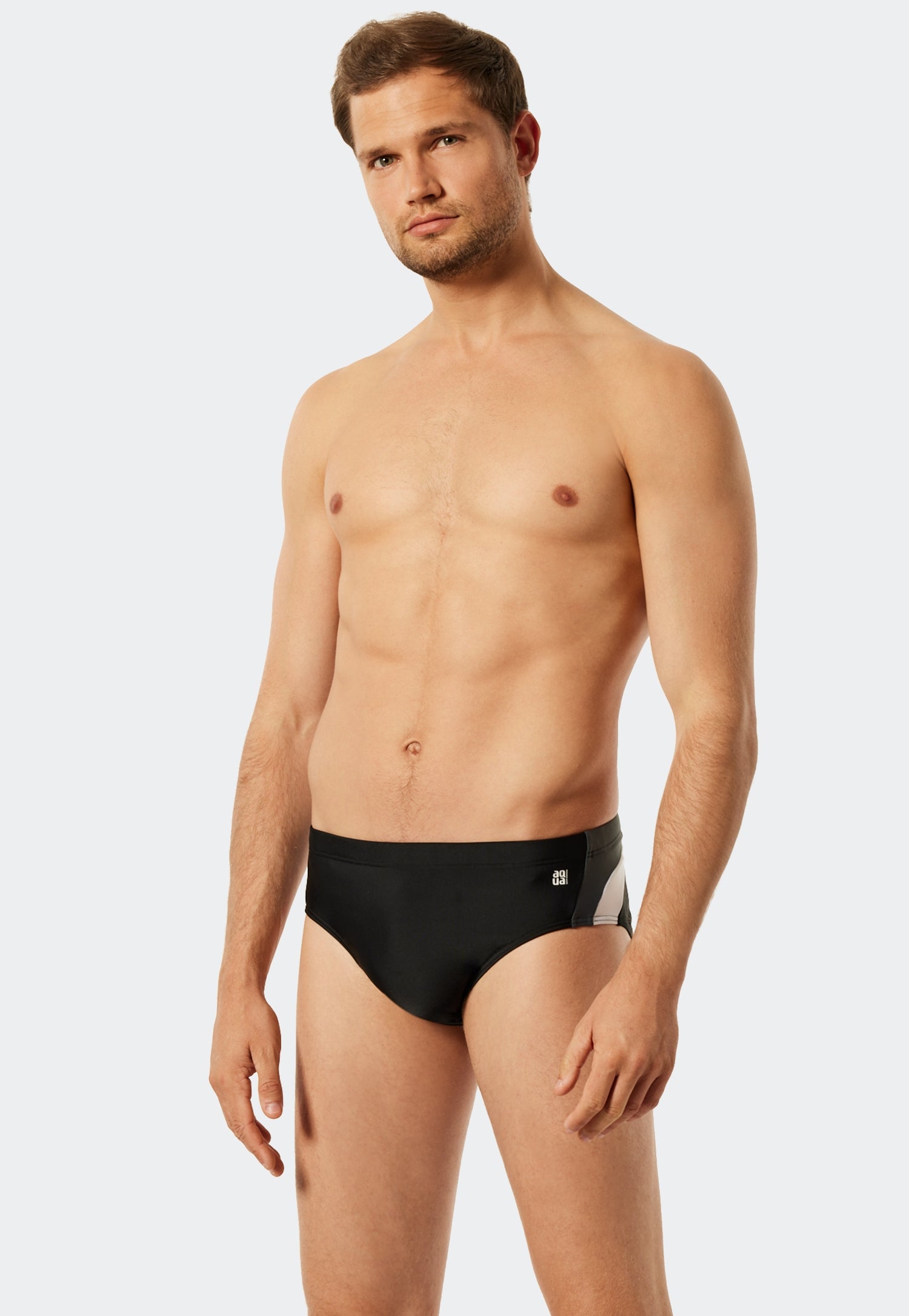 Stilsicher in bester SCHIESSER-Qualität! Diese schwarze Badeshose für Herren aus der SCHIESSER-Kollektion "Aqua" verspricht jederzeit den perfekten Auftritt. Die klassischen, seitlichen Streifen in Grau und Weiß sind ein optisches Highlight und machen den Bade-Supermini zum perfekten Begleiter im Schwimmbad oder Strand. Dank der flexiblen Bindekordel, einem weichem Innenslip und hochwertiger, recycelter Wirkware ist ein angenehmes Tragegefühl garantiert.