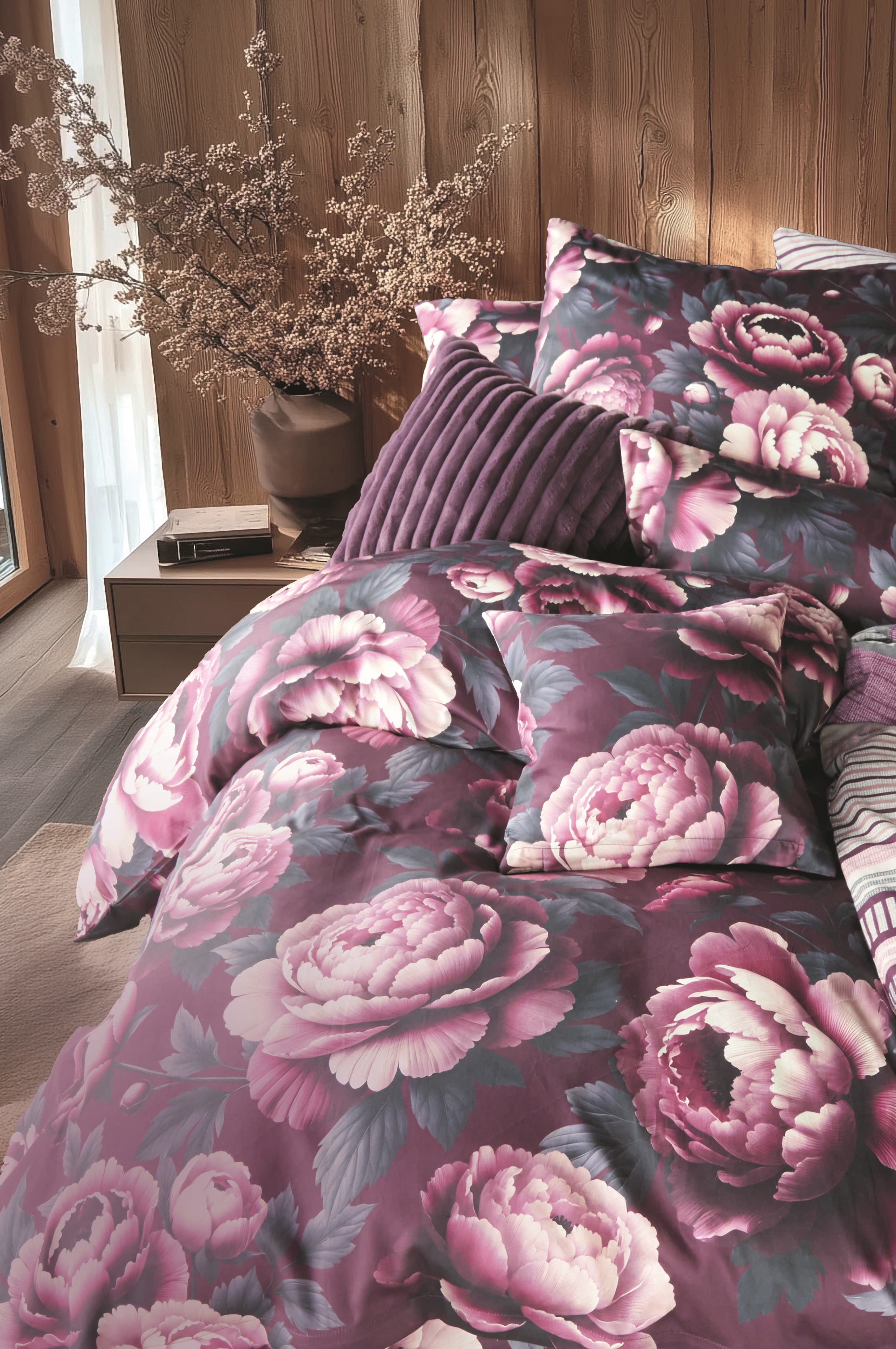Feinsatin-Bettwäsche mit Floral-Print