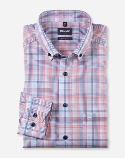 Sommerliche, frische Farben machen den Unterschied im Office. Das sympathische Karomuster verleiht diesem körpernah geschnittenen OLYMP Luxor den smarten Look, die feinen Baumwoll-Garnausspinnungen das angenehme Tragegefühl. Vollendet mit sportivem Button-down. Bügel- und knitterfrei.