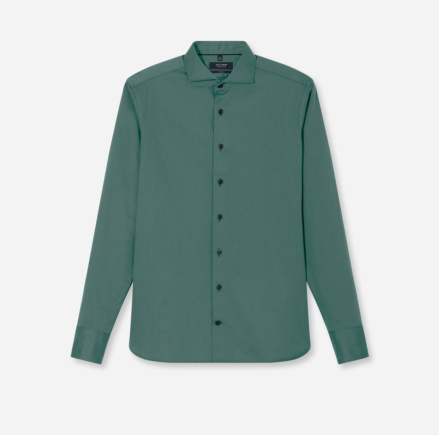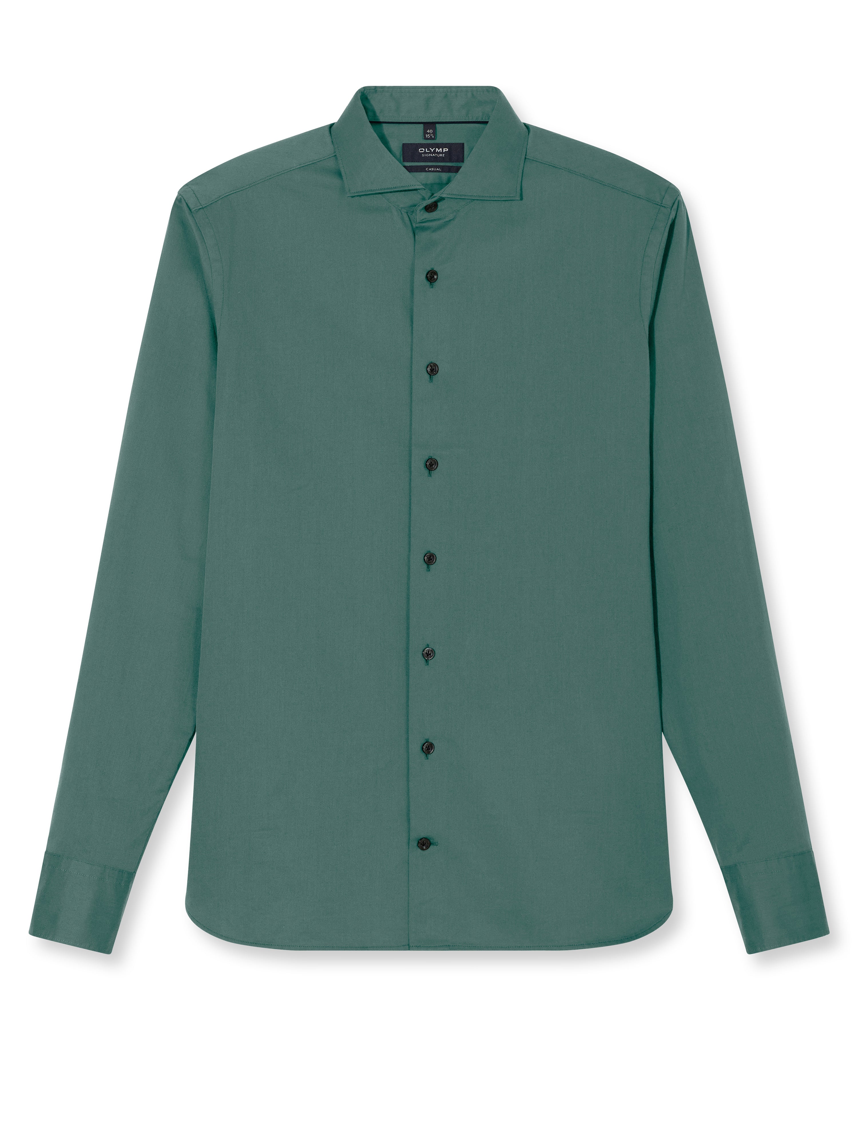 Ein elegantes Casual-Hemd in Oliv, das selbst höchste Ansprüche erfüllt. Dieses OLYMP SIGNATURE Hemd steht ganz im Zeichen innovativen Komforts – motiviert durch die Liebe zu kompromisslos gutem Stil. Der superfeine, dicht gewebte Twill zeigt eine luxuriös elegante Textur und macht die Premiumqualität direkt spürbar. Für eine noch bessere Passform und Optik wurde der beliebte SIGNATURE Haifisch-Kragen erneut optimiert und unter anderem um eine 3-Millimeter-Steppnaht ergänzt. Für präzisen Sitz und Look sorgen die differenzierten Tailored-Fit-Größen. Mit sorgfältigen Handkappnähten und auf Stiel genähten Knöpfen für komfortables Handling. OLYMP SIGNATURE. Das Hemd, das sich trägt wie kein anderes.